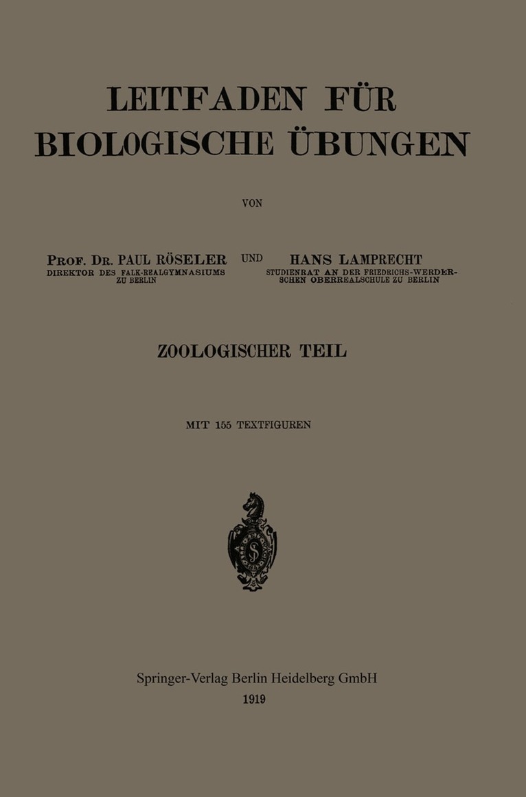 Dieser Buchtitel ist Teil des Digitalisierungsprojekts Springer Book Archives mit Publikationen, die seit den Anfängen des Verlags von 1842 erschienen sind. Der Verlag stellt mit diesem Archiv Quellen für die historische wie auch die disziplingeschichtliche Forschung zur Verfügung, die jeweils im historischen Kontext betrachtet werden müssen. Dieser Titel erschien in der Zeit vor 1945 und wird daher in seiner zeittypischen politisch-ideologischen Ausrichtung vom Verlag nicht beworben.