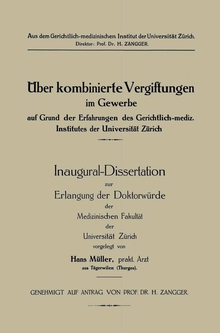 Üeber kombinierte Vergiftungen im Gewerbe auf Grund der Erfahrungen des Gerichtlich-mediz. Institutes der Universität Zürich