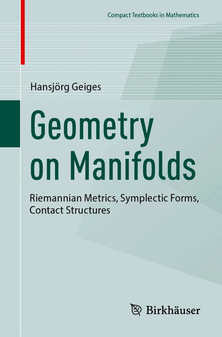 This first course on differential geometry includes not only Riemannian manifolds, but also symplectic and contact geometry. Rather than treating these three fields of geometry as separate subjects, this text emphasises common features by organising the material according to ideas and methods shared by the three fields.Specifically, this text highlights how certain concepts, such as structure-preserving vector fields or variational characterisations of curves adapted to a given geometric structure, find their analogous expressions in the respective field of geometry. For example, Frobenius integrability, which is primarily relevant for contact geometry, is discussed together with the classification of flat Riemannian manifolds, which requires very similar arguments.Another case in point is the discussion of transformation groups (isometries, symplectomorphisms, contactomorphisms) and the corresponding Lie algebras. Two equivalent ways to construct this Lie algebra structure are described: from the usual Lie bracket of vector fields on the manifold, restricted to the subalgebra of structure-preserving ones, or from the right-invariant vector fields on the transformation group.This book also provides a concise introduction to manifolds, vector bundles, differential forms and tensors. As a result, it contains more material than can be covered in a single semester, and it is possible to teach various courses from it, depending on the background knowledge one may want to assume. Many examples and exercises are integrated into the richly illustrated text, making the book suitable for self-study.