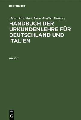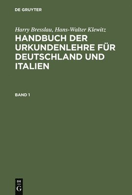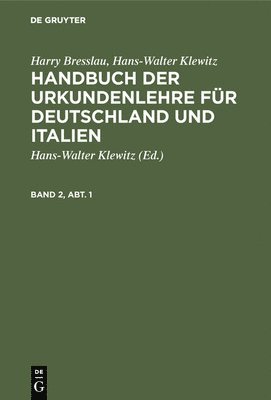 Harry Bresslau; Hans-Walter Klewitz: Handbuch Der Urkundenlehre Für Deutschland Und Italien. Band 2, Abteilung 1