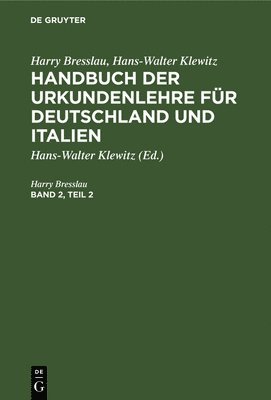Harry Bresslau; Hans-Walter Klewitz: Handbuch Der Urkundenlehre Für Deutschland Und Italien. Band 2, Teil 2