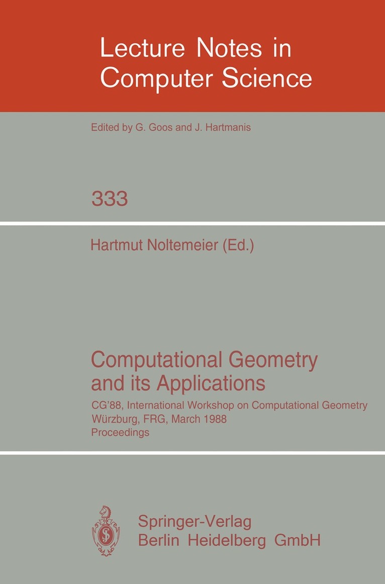 The International Workshop CG '88 on "Computational Geometry" was held at the University of Würzburg, FRG, March 24-25, 1988. As the interest in the fascinating field of Computational Geometry and its Applications has grown very quickly in recent years the organizers felt the need to have a workshop, where a suitable number of invited participants could concentrate their efforts in this field to cover a broad spectrum of topics and to communicate in a stimulating atmosphere. This workshop was attended by some fifty invited scientists. The scientific program consisted of 22 contributions, of which 18 papers with one additional paper (M. Reichling) are contained in the present volume. The contributions covered important areas not only of fundamental aspects of Computational Geometry but a lot of interesting and most promising applications: Algorithmic Aspects of Geometry, Arrangements, Nearest-Neighbor-Problems and Abstract Voronoi-Diagrams, Data Structures for Geometric Objects, Geo-Relational Algebra, Geometric Modeling, Clustering and Visualizing Geometric Objects, Finite Element Methods, Triangulating in Parallel, Animation and Ray Tracing, Robotics: Motion Planning, Collision Avoidance, Visibility, Smooth Surfaces, Basic Models of Geometric Computations, Automatizing Geometric Proofs and Constructions.