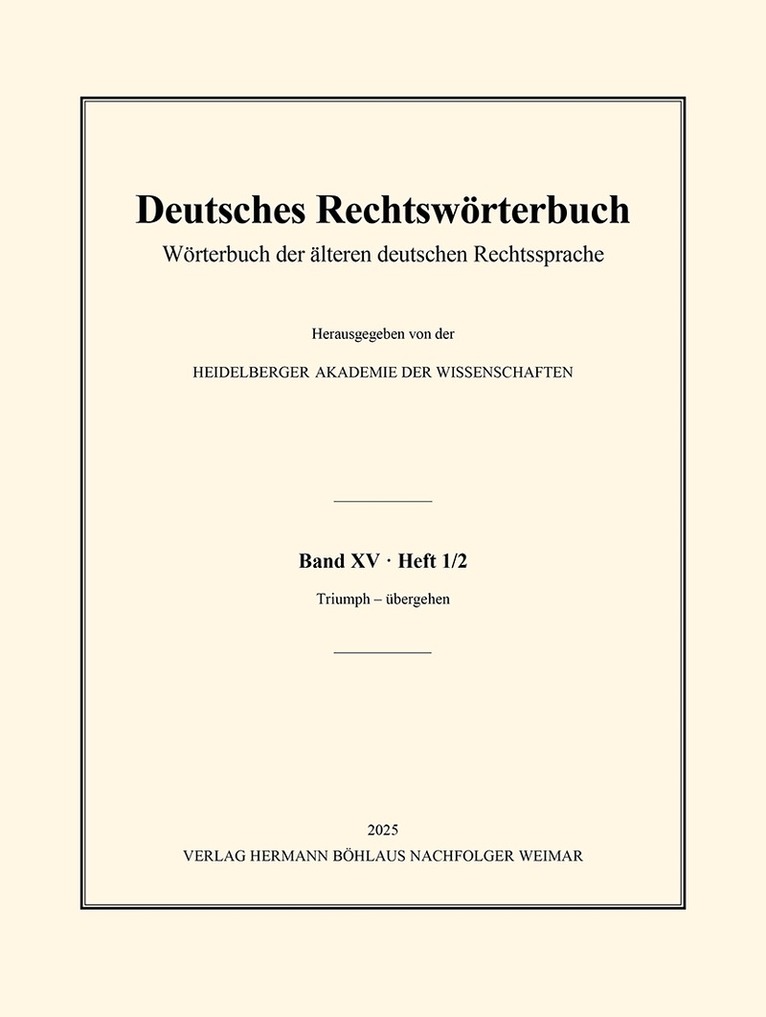 Wörterbuch der älteren deutschen Rechtssprache. Band XV, Heft 1/2 – Triumph – übergehen