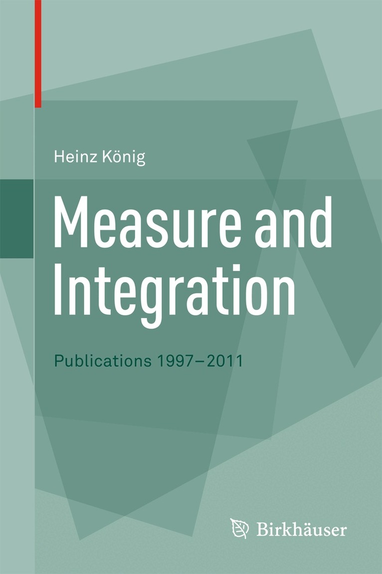 This collection of Heinz König’s publications connects to his book of 1997 “Measure and Integration” and presents significant developments in the subject from then up to the present day. 2, 319-323, 2012), and Measure and integration: the basic extension and representation theorems in terms of new inner and outer envelopes (Indag.