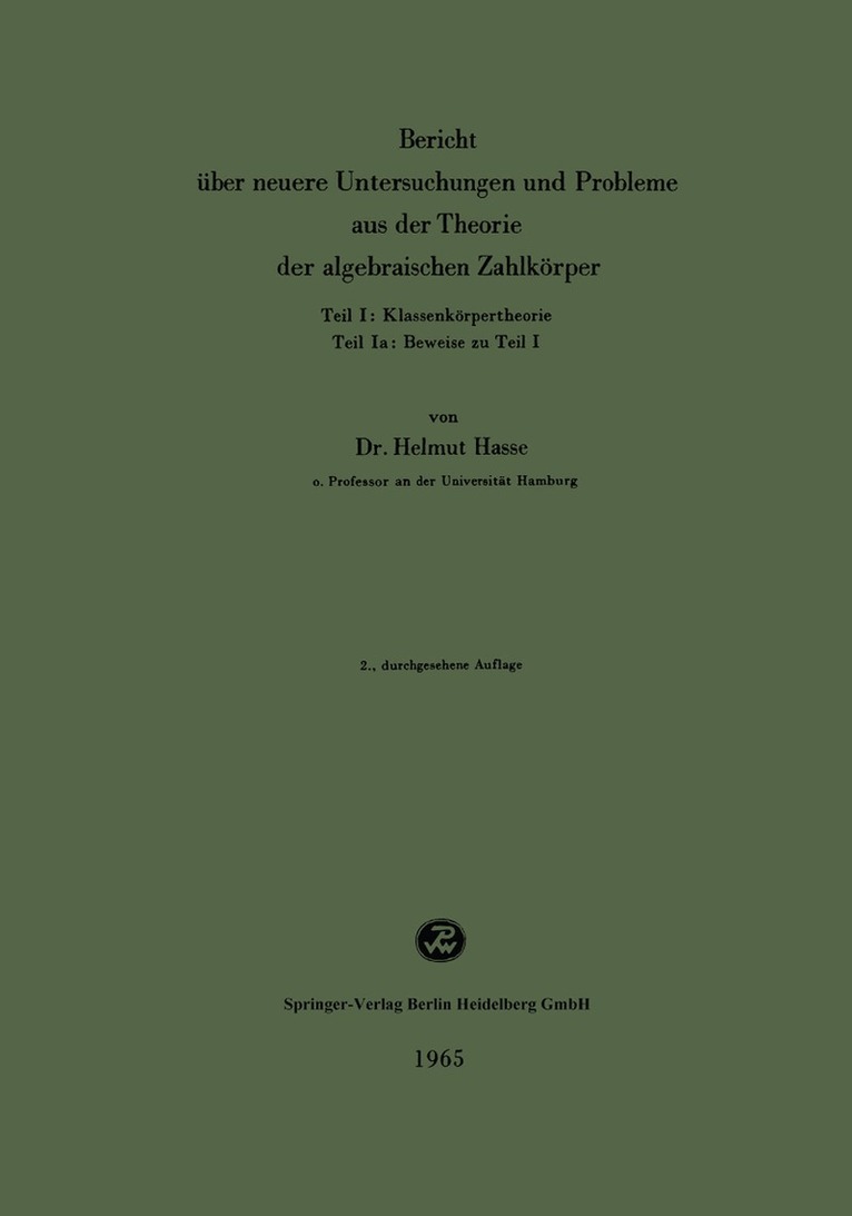 Bericht über neuere Untersuchungen und Probleme aus der Theorie der algebraischen Zahlkörper