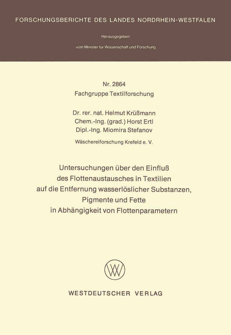 Untersuchungen über den Einfluß des Flottenaustausches in Textilien auf die Entfernung wasserlöslicher Substanzen, Pigmente und Fette in Abhängigkeit von Flottenparametern