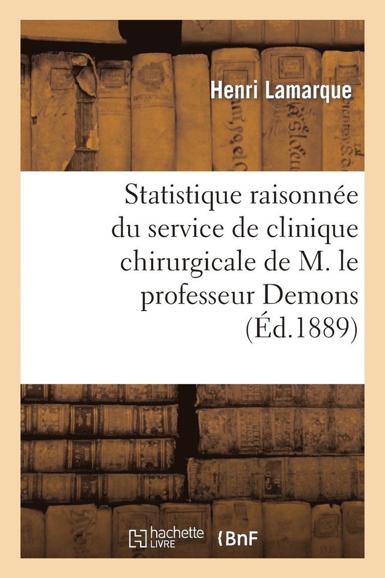 Statistique Raisonnée Du Service de Clinique Chirurgicale de M. Le Professeur Demons À l'Hôpital