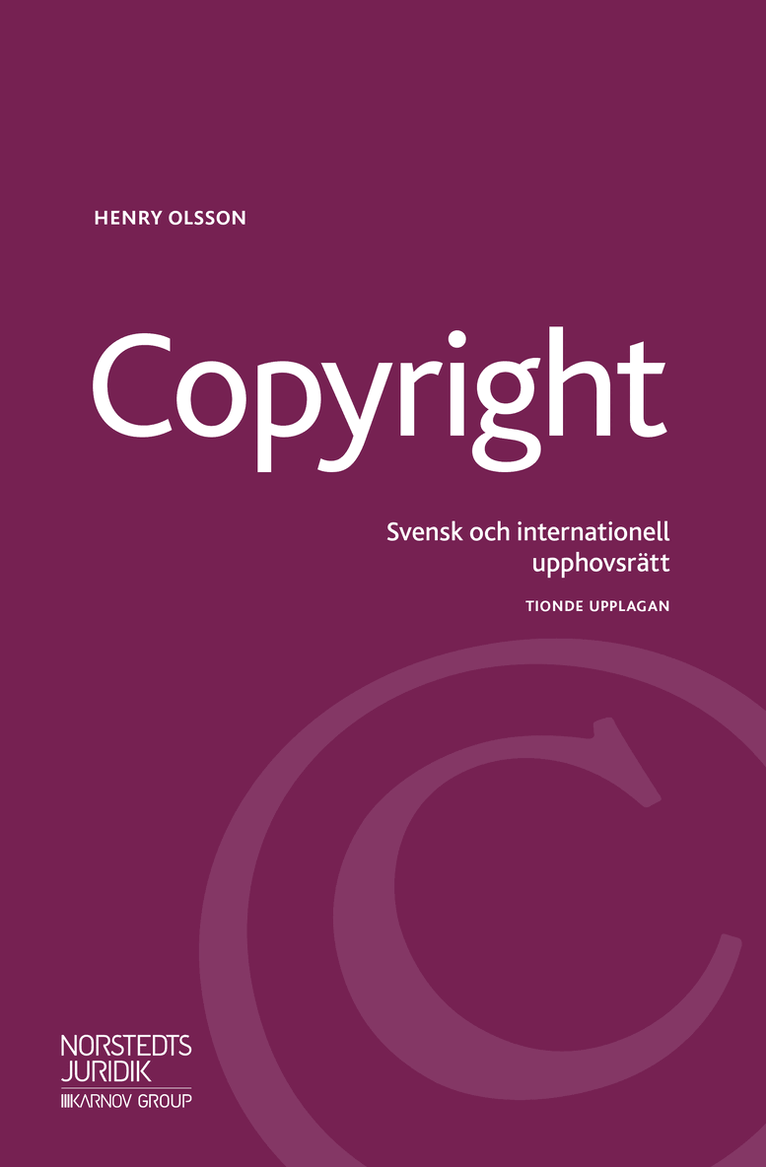 I dagens samhälle har upphovsrätten blivit en viktig del av rättssystemet bådei industriländerna och i utvecklingsländerna. Detta rättsområde reglerar bl.a.författares, kompositörers, konstnärers och andra upphovsmäns rätt attbestämma över utnyttjandet av sina alster. Upphovsrätten spelar en viktig rollinom kultur-, underhållnings- och mediasektorerna och bildar grunden förverksamheten hos en lång rad ekonomiskt viktiga industrier, t.ex. förlagen,samt musik-, film- och datorindustrierna.Upphovsrätten har dessutom fått en stor handelspolitisk betydelse genomatt den ingår i Världshandelsorganisationens regelsystem för den internationellahandeln, vilket bl.a. innebär att bristande respekt för upphovsrättenkan medföra handelspolitiska sanktioner. Numera har upphovsrätten ocksåkommit i politiskt fokus både genom diskussionerna om rättssystemets roll iutvecklingsländerna och här hemma bl.a. genom debatten om piratkopiering och om fildelning. På sista tiden har upphovsrätten också kommit att spela en betydande roll i globala handelspolitiska konflikter, t.ex. mellan Förenta staterna och Kina.Denna tionde upplaga har reviderats i vissa hänseenden och innehåller dessutom ett antal nyskrivna avsnitt bl.a. om upphovsrättens roll för att tillgodose blindas och synskadades tillgång till material i format som de kan tillgodogöra sig. En rad nya rättsfall från EU-domstolen har också förts in i texten.