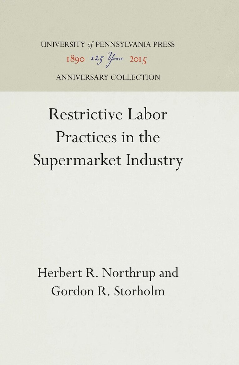 This timely and penetrating study provides new insights into a marketing institution that affects the food-shopping patterns and eating habits of most American families. It raises crucial questions about labor-management relations in supermarkets and seeks to determine whether various labor practices are working against the best interests of the consumer and efficient marketing operations.Herbert R. Northrup and his Industrial Research group at the Wharton School of Finance and Commerce of the University of Pennsylvania employ the techniques of research and analysis in their investigation of the labor-management and collective bargaining structures. The final section of the study deals with the potentials for change presents details of technological progress, and suggests a new philosophy for and approach to labor relations in the industry. In addition to a detailed view of the contemporary situation the student of industry will find here a history of the growth and development of supermarkets and of the unionization movement.Founded in 1921 as a separate Wharton department, the Industrial Research Unit has a long record of publication and research in the labor market, productivity, union relations, and business report fields. Major Industrial Research Unit studies as published as research projects are completed. This volume is Study no. 44.