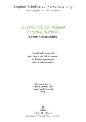 Kanoninstanz Schule. Eine Quellenauswahl Zum Deutschen Lektuerekanon in Schulprogrammen Des 19. Jahrhunderts