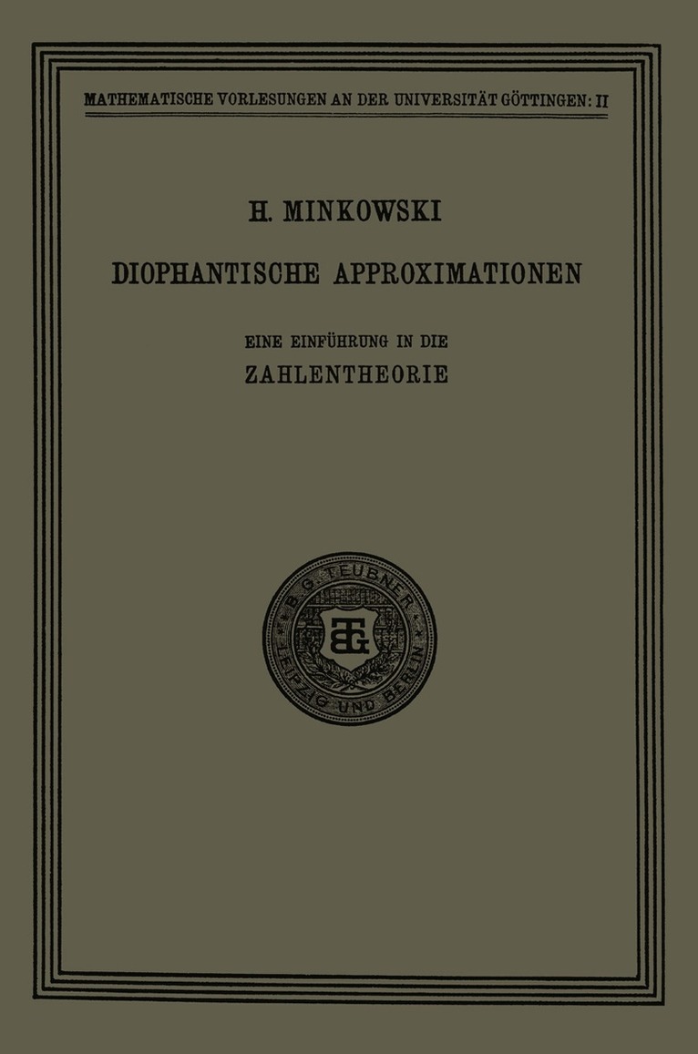 Mit D. Hilberts Gedächtnisrede auf H. Minkowski, Göttingen 1909