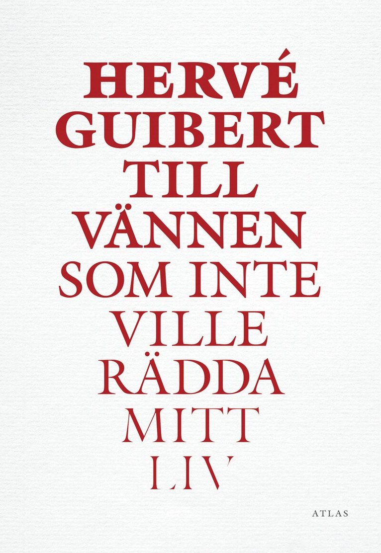 I januari 1988 får författaren Hervé Guibert beskedet att han är hiv-positiv. Från den stunden blir skrivandet det enda som håller honom samman, en besvärjelse mot vanmakten. I hundra paniska stycken dokumenteras sjukdomens framfart: läkarbesöken, de sjunkande blodvärdena, dödsskräcken som blandas upp med både en dödslängtan och en förhöjd livskänsla. Det är en grym berättelse, behärskad och exakt, drypande av svart humor. Här finns de omtalade skildringarna av parisiska celebriteter främst filosofen Michel Foucault, som inte ville att någon skulle veta att han var döende i aids och som själv förnekade sjukdomen in i det sista men allra mest lämnar Guibert ut sig själv. Till vännen som inte ville rädda mitt liv väckte stor uppmärksamhet när den först utgavs i Frankrike 1990. Den räknas i dag som en av de centrala aidsskildringarna, men är även ett litterärt mästerverk i egen rätt. Hervé Guibert (19551991) författare och fotograf, levde större delen av sitt liv i Paris och Rom. Han debuterade 1977 med romanen La mort propagande och publicerade sedan ett tiotal böcker under 1980-talet. Anders Bodegårds svenska översättning av Till vännen som inte ville rädda mitt liv återutges här för första gången, med ett nyskrivet förord av författaren och översättaren Jenny Högström. På svenska finns även romanen Blinda i översättning av Jan Henrik Swahn (Legenda, 1989).