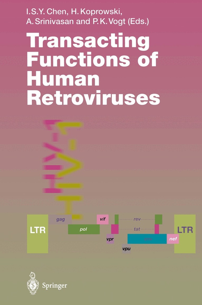 The genome of retroviruses contains three major coding regions for virion proteins, gag, pol and env. Gag encompasses information for nonglycosylated viral proteins that form the matrix, the capsid and the nucleoprotein structures. From pol derive reverse transcriptase and integrase, and env codes for the surface glycoproteins of the virion which consist of a transmembrane and a surface domain, linked by disulfide bonds. A viral protease is derived eitherfrom the gagorfrom the pol coding region, depending on the virus. Simple retroviruses contain only this elementary gag, pol, and env coding information. Once integrated, they are able to multiply efficiently, using the cellular transcriptional and replication machineries without intervention of viral transacting factors. Most oncogenic retroviruses belong in this category. Complex retroviruses, on the other hand, encode additional nonstructural proteins from multiply spliced messages. These proteins play important regulatory roles in the life cycle of the virus.They function as transacting factors that, in concert with cellular regulatory proteins, control viral gene expression and function and are essential components in the replication of complex retroviruses. To this category belong the lentiviruses, the spumaviruses and a group of oncogenic retroviruses that includes human T cell leukemia virus (HTLV) and bovine leukosis virus(BLV).