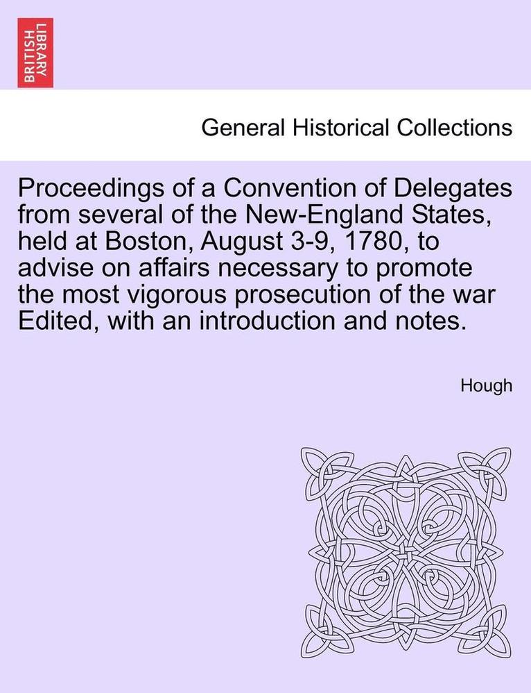 Proceedings of a Convention of Delegates from Several of the New-England States, Held at Boston, August 3-9, 1780, to Advise on Affairs Necessary to P