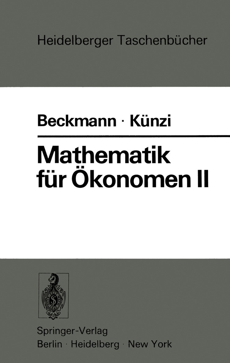 Hiermit legen wir den zweiten Band der geplanten drei Teile der "Mathematik für Ökonomen" vor. Wie beim Band I über die Analysis von Funktionen einer Veränderlichen haben wir eine auf die besonderen Bedürfnisse des Studiums der Wirtschaftswissen schaft und der Unternehmensforschung ausgerichtete Darstellung der linearen Algebra gewählt. Dabei haben wir uns bemüht, die mathematische Theorie mit Anwendungen aus diesen beiden Dis ziplinen zu verbinden. Beim vorliegenden Stoffgebiet ist es sinnvoll, zunächst in den Abschnitten 1-6 die Grundlagen zu schaffen und die Anwendungen in den Abschnitten 7-9 zusammenhängend zu bringen. Infolge der rasch fortschreitenden Entwicklung der mathe matischen Wirtschaftswissenschaft und der Unternehmensfor schung können wir keinen Anspruch auf Vollständigkeit der typi schen Modelle erheben, haben aber auf die Auswahl der Beispiele besondere Sorgfalt verwendet. Es hat sich als zweckmäßig erwiesen, die Ausführungen über die lineare Algebra vor die Behandlung der Funktionen mit mehre ren Veränderlichen zu stellen, für die nun der Band III vorgesehen ist. Zum Studium dieses Bandes sind aber keine Kenntnisse der Differential- und Integralrechnung notwendig. Der Inhalt des vorliegenden Bandes beruht auf Aufzeichnungen von Vorlesungen, die H.P. KÜNZI während mehrerer Jahre an der Universität Zürich gehalten hat. Die Abschnitte mit den ökono mischen Anwendungen stammen zum großen Teil aus Kursen von M. BEcKMANN, die an der Brown University, der Universität Bonn und der Technischen Universität München veranstaltet wurden. Die eigentliche Ausarbeitung des Textes, die zahlreichen Ergän zungen und die geschicktere Anordnung des Stoffes hat Herr Dr.