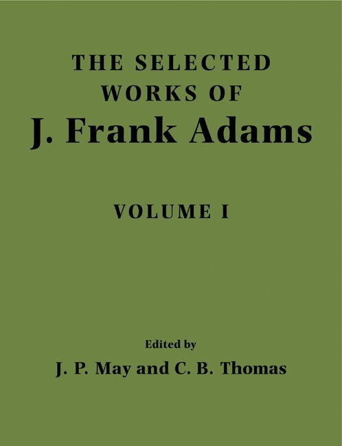 J. Frank Adams was one of the world's leading topologists. He solved a number of celebrated problems in algebraic topology, a subject in which he initiated many of the most active areas of research. He wrote a large number of papers during the period 1955-1988, and they are characterised by elegant writing and depth of thought. Few of them have been superseded by later work. This selection, in two volumes, brings together all his major research contributions. They are organised by subject matter rather than in strict chronological order. The first contains papers on: the cobar construction, the Adams spectral sequence, higher-order cohomology operations, and the Hopf invariant one problem; applications of K-theory; generalised homology and cohomology theories. The second volume is mainly concerned with Adams' contributions to: characteristic classes and calculations in K-theory; modules over the Steenrod algebra and their Ext groups; finite H-spaces and compact Lie groups; maps between classifying spaces of compact groups. Every serious student or practitioner of algebraic topology will want to own a copy of these two volumes both as a historical record and as a source of continued reference.