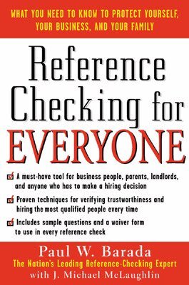 Everyone's guide to protecting yourself from dishonest people, by the nation's most respected reference-check expert Unqualified hires, abusive nannies, delinquent renters, dishonest contractors ...in today's dog-eat-dog world, what readers don't know about the people they depend on can definitely hurt them. Written in plain, jargon-free English by Monster.com's reference expert, Reference Checking for Everyone tells managers, business owners, HR professionals, landlords, administrators, and even parents how to find everything they need to know about anyone. Paul Barada covers every aspect of personal intel-gathering with a wealth of easy-to-access information on: * Choosing the best employees, tenants, nannies, service providers, and other key people * Navigating the complex legal issues--includes a waiver form and lists of questions that can and cannot be asked legally * Getting information quickly to avoid slowing down the hiring or rental process * Exposing liars and dealing with dishonest candidates, renters, and others * Obtaining in-depth history, even when confronted with "no comment" policies
