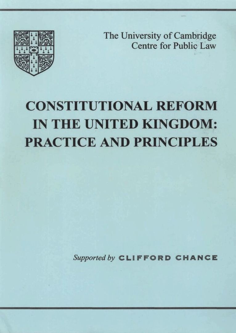 The Labour Government's proposals for reform of the UK's internal constitutional arrangements promise the most wide-ranging and substantial overhaul of the constitution this century. Their plans,which include devolution for Scotland and Wales, incorporation of the ECHR, a Freedom of Information Bill and reform of both houses of Parliament are already far progressed, but critical choices have still to be made. Against this background, and in view of these historical events, the Directors of the Centre for Public Law at the University of Cambridge recently organised a major conference to discuss the legal and practical implications of the proposed reforms. Speakers at the conference included leading academics, barristers, solicitors, judges and politicians. The results, which are reproduced in this volume of conference proceedings, will be essential reading for all those interested in constitutional reform and in British political history.