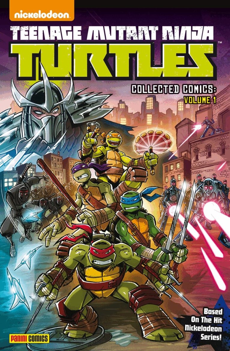 The heroes in a half shell are back in a brand-new comic series. The world's most fearsome fighting teens and take on the Krang, Shredder and their monstrous minions, Bebop, Rocksteady and the deadly Foot ninja, as well as saving the world from a host of deadly foes! Join Leonardo, Raphael, Michaelangelo, Donatello and their mentor Splinter in some of their wildest adventures ever! Collecting Teenage Mutant Ninja Turtles #1-12.