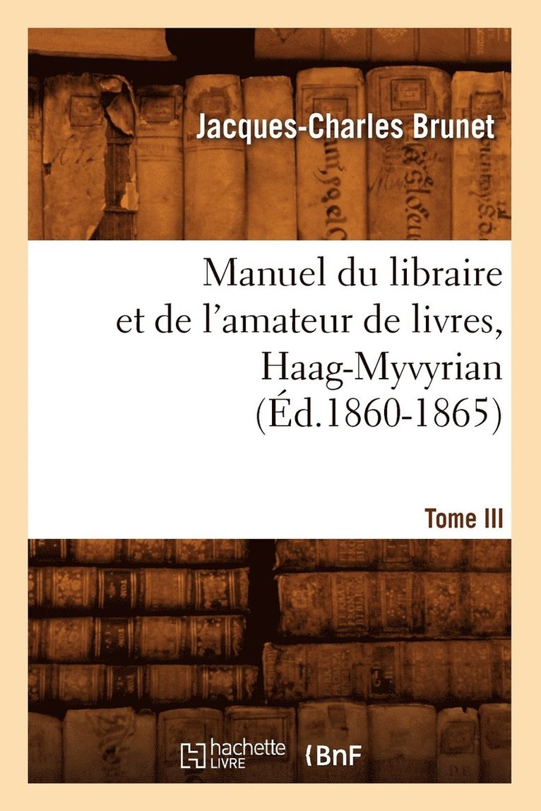Manuel Du Libraire Et de l'Amateur de Livres. Tome III, Haag-Myvyrian (Éd.1860-1865)