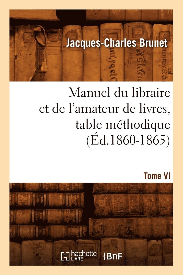 Manuel Du Libraire Et de l'Amateur de Livres. Tome VI, Table Méthodique (Éd.1860-1865)