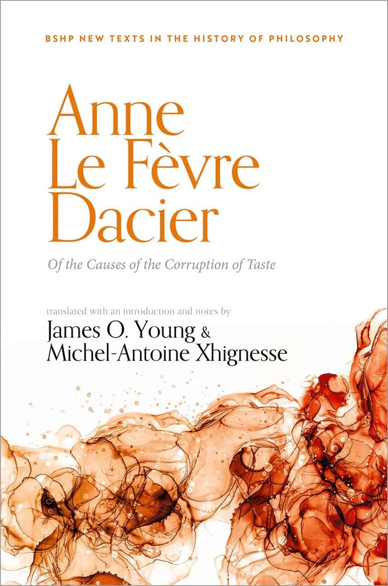 Anne Le Fèvre Dacier (1645-1720) was the most important woman of letters of her time and Of the Causes of the Corruption of Taste is her most significant work. This book is one of the wellsprings of modern aesthetics. While Dacier was a classical philologist—not an aesthetician or philosopher of art—in several ways she anticipated and laid the groundwork for subsequent writers on the fine arts, including Batteux and Du Bos, both of whom cite her. Her views on art are at least as sophisticated and interesting as those found in contemporaries such as Addison and Shaftesbury or anyone in France. Dacier addresses topics that would become staples in the philosophy of art, in many cases long before other writers did. She contributed to the demise of the rationalist approach to art criticism and to the rise of the view that the beauties of art are apprehended by means of experience, a view which came to dominate eighteenth-century thinking about the arts.Dacier was one of the first eighteenth-century authors to emphasize that art is essentially the imitation of nature and belle nature. She raised questions about whether art can be a source of moral knowledge long before this became a widely discussed question in the philosophy of art. She richly deserves a prominent place in the early history of aesthetics. This volume is the first-ever translation of a work by Dacier into English. It includes a substantial introduction that not only examines her contributions to the philosophy of art but also traces her influence on the development of the subject through the eighteenth century.