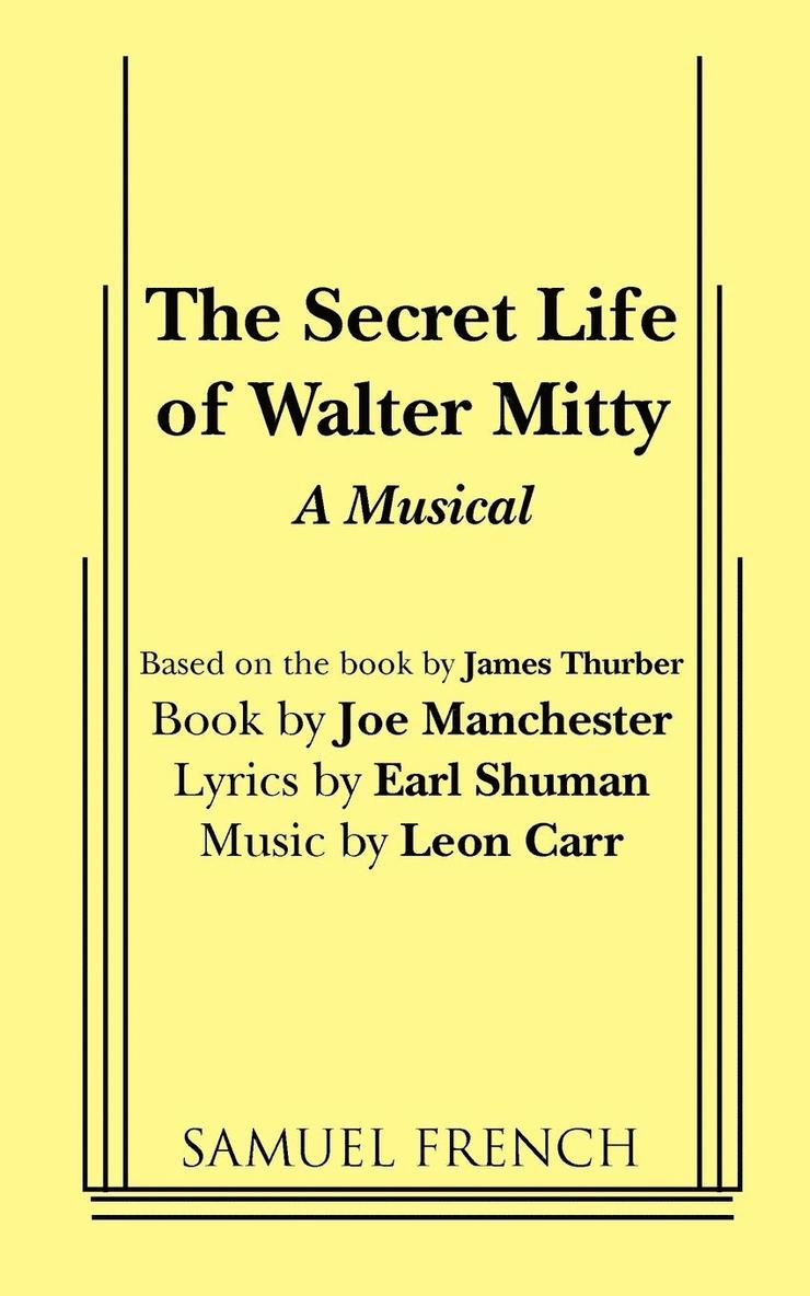 Musical comedy Based on the story by James Thurber Characters: 5 male, 6 female, and as many extras as desired. Scenery: Various simple sets (or one basic set). On his fortieth birthday Walter Mitty reflects on his drab, ordinary life. Defeated in his quest for wealth and glory by family responsibilities, a mortgage, and a routine job, he creates elaborate fantasies in which he is the hero. His secret world is so enticing that he often loses sight of the boundary between dream and reality and comically slips into his imagination. An attractive would be chanteuse aptly named Willa de Wisp encourages Walter to leave his wife, shed the burdens of suburban living and really live the secret life. Unfortunately it is as unattainable as it is appealing. At the end of the play Walter discovers that he is happily committed to the real world. "A thoroughly pleasant musical evening."-- Time.