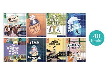 This pack contains 48 books, six of each of the following titles: Peg Doll Gran, In Real Life, Nathan and the Polar Bear, We Want Change!, Team Rescue, The Bravest Roman of All, The Calico Cat Cafe, The Wondrous Women of WWII.Reflect is a series of emotionally powerful fiction and non-fiction with realistic settings, carefully crafted to promote thoughtful discussions and develop higher-level reading comprehension. Written by top authors and developed with Literacy expert Nikki Gamble, these are books you can trust to engage, entertain and support children's personal development and wellbeing. The books are finely levelled, making it easy to match every child to books with the right depth and complexity, and helping them to progress. Each book contains inside cover notes to help children deepen their understanding and support their reading comprehension. Teaching notes on Oxford Owl offer cross-curricular links to Relationships Education and support literacy skills.
