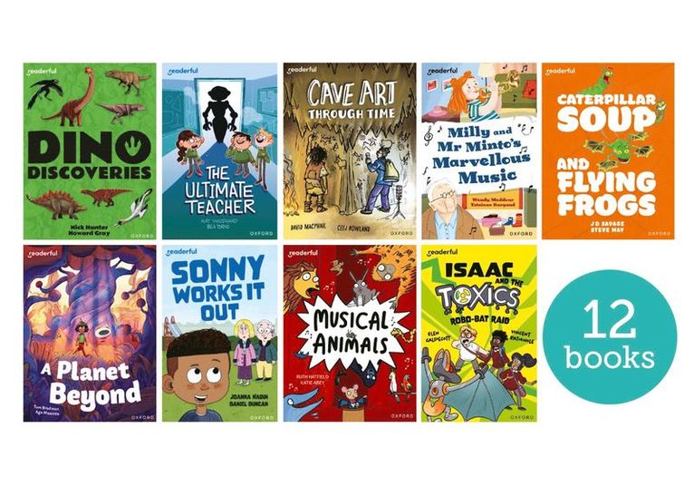 Get more children reading more! This pack of 12 fiction, non-fiction and graphic text books from the Readerful Independent Library is for children at Oxford Reading Levels 10 and 11, aged 7 to 8 years, to read independently. Readerful: Oxford Reading Levels 10-11: Independent Library Singles Pack A (Pack of 12) contains:• 1 x Readerful Independent Library: Oxford Reading Level 10: Dino Discoveries• 1 x Readerful Independent Library: Oxford Reading Level 10: Cave Art Through Time• 1 x Readerful Independent Library: Oxford Reading Level 10: Caterpillar Soup and Flying Frogs• 1 x Readerful Independent Library: Oxford Reading Level 10: The Ultimate Teacher• 1 x Readerful Independent Library: Oxford Reading Level 10: Milly and Mr Minto's Marvellous Music• 1 x Readerful Independent Library: Oxford Reading Level 10: Shackleton · Deep Sea Adventure• 1 x Readerful Independent Library: Oxford Reading Level 11: Incredible Roads• 1 x Readerful Independent Library: Oxford Reading Level 11: Musical Animals• 1 x Readerful Independent Library: Oxford Reading Level 11: Amazing Octopuses• 1 x Readerful Independent Library: Oxford Reading Level 11: Sonny Works It Out• 1 x Readerful Independent Library: Oxford Reading Level 11: Isaac and the Toxics · Robo-Bat Raid• 1 x Readerful Independent Library: Oxford Reading Level 11: A Planet BeyondReaderful: Inspiring Children to Read MoreReaderful is a specially designed reading library that motivates children aged 4-11 to develop a lifelong love of reading. The series offers contemporary, inclusive books across three key collections: Books for Sharing: Picture books to be read aloud by an adult for inspiring reading sessionsIndependent Library: Fiction, graphic texts, character mini-series and non-fiction for children to read independentlyRise: Fully decodable books for older struggling readers to read independently.How Readerful works: • Read aloud the Books for Sharing for magical reading sessions that motivate children to read more. • Encourage children to choose a book to read by themselves, from Readerful's Independent Library or from Rise. You'll find links between the books' topics, vocabulary, characters and authors - all designed to keep children reading, boost their vocabulary and develop their knowledge of the world around them.