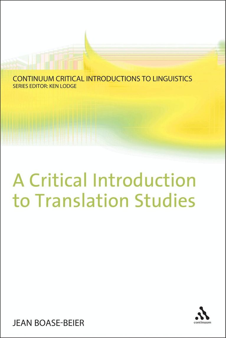 This title covers theoretical and practical translation where style plays an important role and where the translator's options are not always straightforward. "Jean Boase-Beier's Critical Introduction To Translation Studies" demonstrates a keen understanding of theoretical and practical translation. It looks to instances where translation might not be straightforward, where stylistics play an important role. Examples are discussed from works of literature, advertisements, journalism and others, where effects on the reader are central to the text, and are reflected in the style. It begins by setting out some of the basic problems and issues that arise in the study of translation, such as: the difference between literary and non-literary translation; the role of language, content and style; the question of universals and specifics in language and the notion of context. The book then goes on to focus more closely on style and how it enables us to characterise literary texts and literary translation. The final part looks at the translation of poetry. Throughout, it is conscious of the relationship between theory and practice in translation.This book offers a new approach to translation, grounded in stylistics, and it will be an invaluable resource for undergraduates and postgraduates approaching translation studies. "Continuum Critical Introductions to Linguistics" are comprehensive introductions to core areas in linguistics. The introductions are original and approach the subject from unique and different perspectives. Using contemporary examples and analogies, these books seek to explain complicated issues in an accessible way. The books prompt critical thinking about each core area, and are a radical departure from traditional, staid introductions to the subject. Written by key academics in each field who are not afraid to be controversial, each book will be essential reading for undergraduate students.