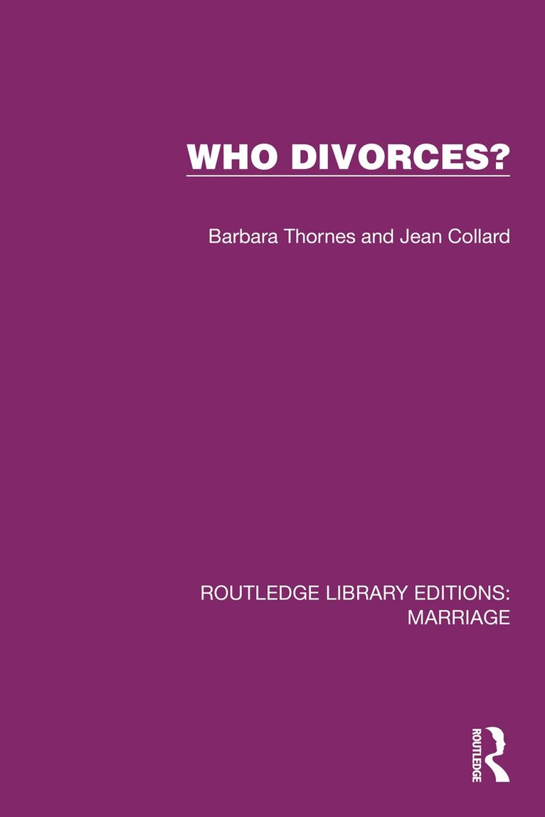 The divorce rate in England and Wales increased nearly four-fold between 1950 and 1976; in the five years following the implementation of the 1969 Divorce Reform Act in January 1971, it more than doubled. Despite the plethora of public comment about the rising divorce rates, there was at the time very little objective data in our society about either those who chose to resolve their marital unhappiness by divorce, or the possible causes and consequences of such divorce.Originally published in 1979, this book, the first published study from the Marriage Research Centre, represented an important landmark in a relatively unexplored field. Who Divorces? Presents the findings of a large-scale study into the characteristics of those who divorce. Certain childhood, adolescent, pre-marital and marital characteristics and experiences of a random sample of men and women who divorced are considered and compared with the characteristics and experiences of a random sample of men and women whose marriages were still intact.Additionally, research findings relating to the causes and consequences of divorce, both for the individual and for society, are discussed with particular reference to the wide range of prevailing opinion on these matters.