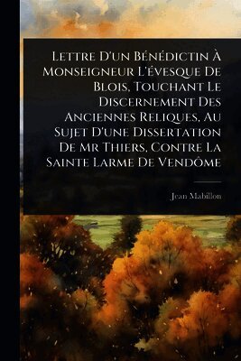 Lettre D'un BÃ(c)nÃ(c)dictin à Monseigneur L'Ã(c)vesque De Blois, Touchant Le Discernement Des Anciennes Reliques, Au Sujet D'une Dissertation De Mr Thiers, Contre La Sainte Larme De Vendôme