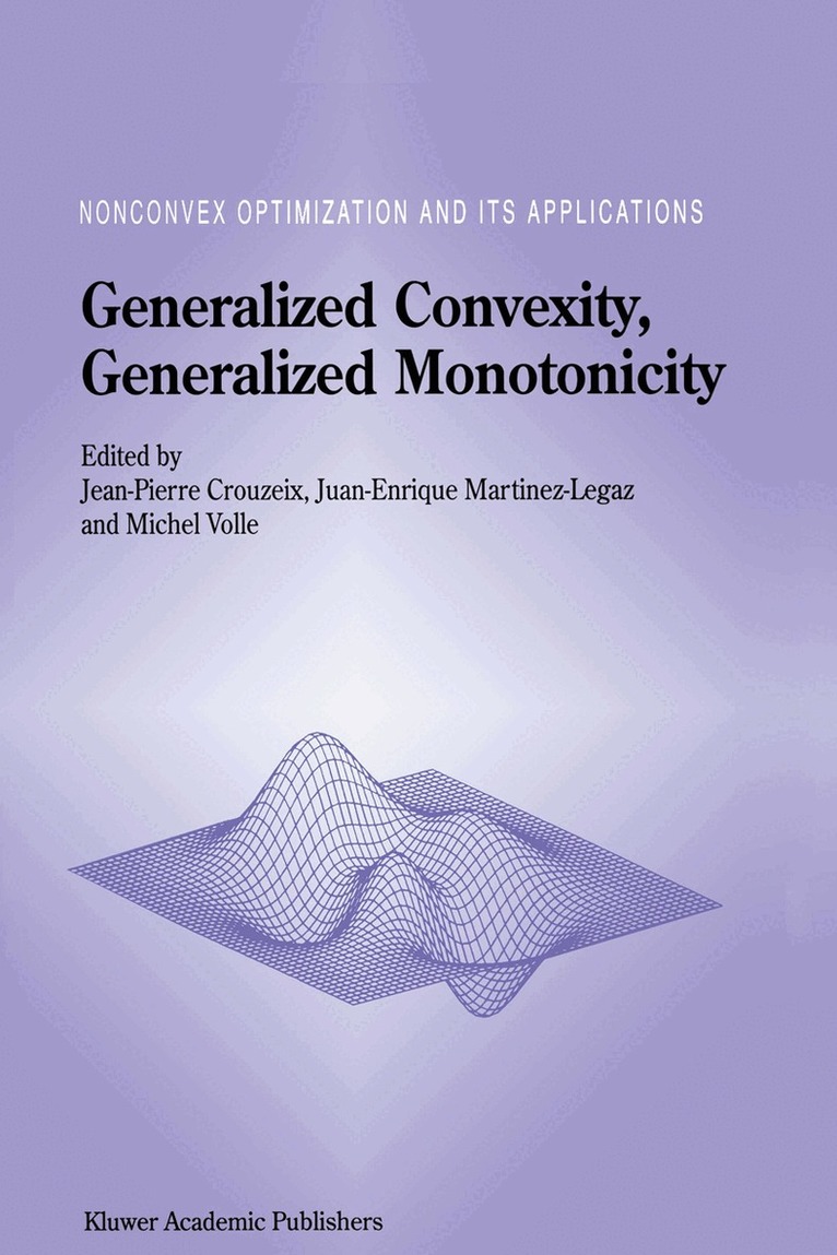 The geometrical structure induced by convexity in mathematical programming has many useful properties: continuity and differentiability of the functions, separability and optimality conditions, duality, sensibility of the optimal solutions, and so on. Several of the most interesting ones are preserved when convexity is relaxed in quasiconvexity or pseudoconvexity (a function is quasi-convex if its lower level sets are convex). This is still the case for variational inequalities problems when the classical monotonicity assumption on the map is relaxed in quasimonotonicity or pseudomonotonicity. This volume contains 23 selected lectures presented at an international symposium on generalized convexity. It provides a review of developments. The text should be of value to researchers and students working in economics, mathematical programming, operations research, management sciences, equilibrium problems, engineering and probability.
