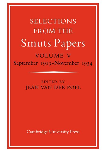 Volumes V, VI and VII complete the series of selections from the Smuts Papers. They cover the period from August 1919, when Smuts succeeded Botha as prime minister of the Union of South Africa, until his death in September 1950. The selection is divided into six parts, each with a short introduction. All the documents are annotated and those in Dutch or Afrikaans are provided with translations. There are over six hundred biographical notes. Smuts's stature as a world statesman, his intimate concern with the problems of European and Commonwealth politics and his central position in South African affairs place his private papers among the most important collections of their kind. Volume V covers the period from 1919 to 1934 - years of crisis for Smut's 'own child', the League of Nations and, in South Africa, a time which saw confrontations on colour questions and adjustments that led to party fusion.