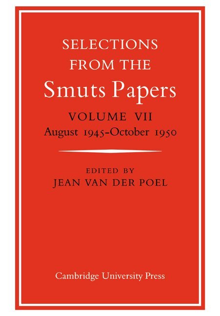 Volumes V, VI and VII complete the series of selections from the Smuts Papers. They cover the period from August 1919, when Smuts succeeded Botha as prime minister of the Union of South Africa, until his death in September 1950. The selection is divided into six parts, each with a short introduction. All the documents are annotated and those in Dutch or Afrikaans are provided with translations. There are over six hundred biographical notes. Smuts's stature as a world statesman, his intimate concern with the problems of European and Commonwealth politics and his central position in South African affairs place his private papers among the most important collections of their kind. Volume VII covers the last five years of Smut's life - years of political innovation, of eventual failure, of private adversity. The volume also contains the biographical entries and the general index.