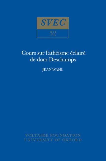 Né à Rennes le 10 janvier 1716, dom Deschamps entra dans les ordres le 8 septembre 1733. Il resta au prieuré de Montreuil-Bellay, près de Saumur le 19 avril 1774. Il fut nommé procureur du couvent, c'est-à-dire simplement économe. A partir de 1761, il résida au château des Ormes où le marquis d'Argenson lui donna asile. En 1774 il mourut au couvent muni des sacraments.Il entreprit une réfutation du système de la nature du baron d'Holbach et une réfutation de Spinoza. Il tenta beaucoup de démarches, ce qu'il appelle ses tentatives, auprès des principaux esprits de son temps, Helvétius, Alembert, Voltaire, Rousseau; c'est surtout avec Robinet qu'il eut une longue correspondance.Dans cet œuvre Jean Wahl montre que ce moine qui prétend au titre d'athée éclairé, cet homme qui était en contact avec Voltaire et Rousseau et dont les idées ont gagné l'admiration de Diderot, mérite plus d'attention et d'intérêt qu'il n'a reçu jusqu'ici.