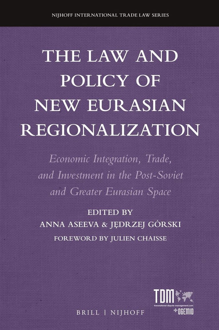 The Law and Policy of New Eurasian Regionalization: Economic Integration, Trade, and Investment in the Post-Soviet and Greater Eurasian Space, edited by Anna Aseeva and Jędrzej Górski, makes several unique contributions to the literature. First and foremost, most of the current literature is in either economics or politics, with only a secondary focus on legal and institutional matters. Secondly, and consequently, the book is accessible and relevant to readers both ‘inside’ and ‘outside’ the boundaries of the Eurasian area: not only geographical boundaries, but also legal, geopolitical, geoeconomic, cultural, and, indeed, disciplinary boundaries.Drawing on international, transnational, and comparative legal scholarship, this rich volume offers the insights by a plethora of leading international scholars in economics, institutional theory, area studies, international relations, global political economy, political science, and sociology. The contributors come from four corners of the globe, including Asia, Europe, and North America.