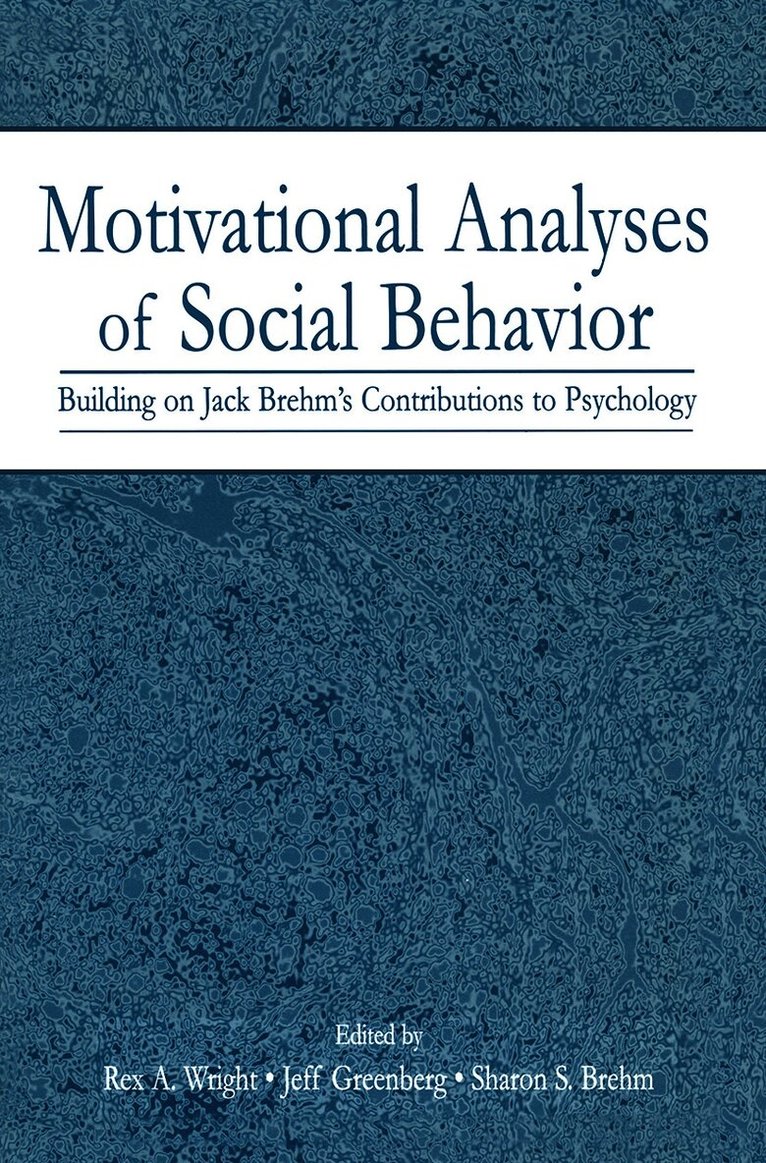 This book honors Jack W. Brehm's contributions to psychology, all of which revolve around a central theme of motivation and social behavior. It begins with two personal chapters and then presents a collection of cutting-edge, substantive chapters authored by researchers whose work Brehm has strongly influenced. It concludes with a chapter by Jack Brehm that reflects on the field of psychology, discusses a new theory of social influence, and offers ideas about the direction in which our understanding of human behavior could move.Motivational Analyses of Social Behavior will be of value to research scientists, educators, and practitioners interested in social motivational processes and those who developed major theories in this area. Interested readers include individuals specializing in social, clinical, organizational, personality, health, and motivational psychology, and psychophysiology. The book would also be ideal for advanced courses on social motivation and the history of psychology.