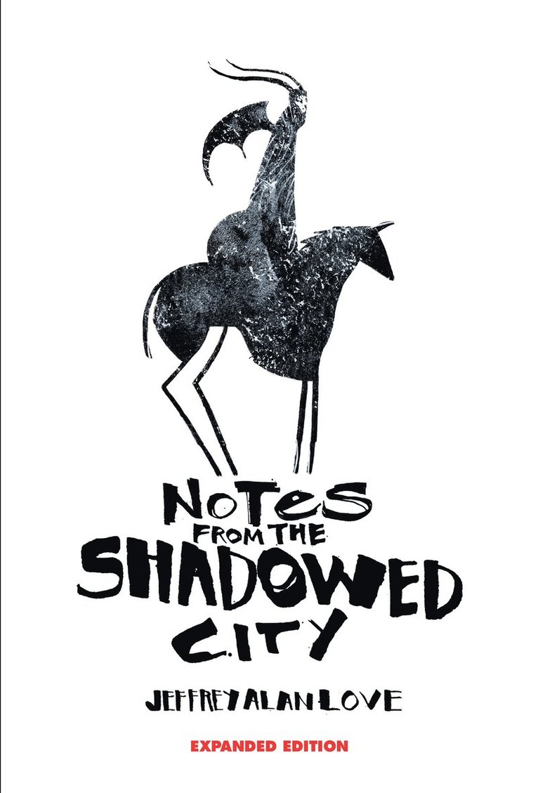 Notes From the Shadowed City is the travelogue of a young man who sets off on a journey to research magical swords. He finds himself stranded in a land he does not know and enters a city with no name over which looms an ominous floating citadel. As he seeks a way home, he fills his notebook with drawings and observations of his life in this strange place. It is full of masked swordsmen, cities that walk, ancient gods, swords made from petrified trees and dragons that move mountains. There’s also a mysterious woman who captures his heart. From the imagination of award-winning artist Jeffrey Alan Love comes this illustrated tale of swords and magic, memory and loss, and the overwhelming desire to find a way home no matter the cost. His first book detailing this fantastic journey, Notes From the Shadowed City is told through small moments that create a larger narrative. Love employs his enowned artistry to create a heavily visual narrative boasting more than seventy illustrations, and every spread features his art along with handwritten text—a captivating journal entry that expands into a visual symphony. As you follow in the footsteps of this young man, you’ll be intrigued to seek out the Shadowed City.This expanded edition includes a 32- page behind the scenes section that features sketches and commentary revealing how Jeffrey Alan Love created Notes From the Shadowed City.