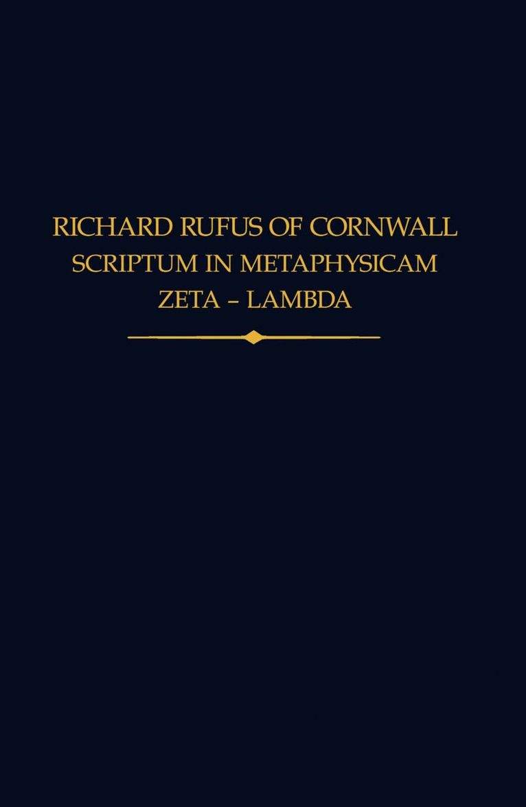 This is the first great commentary in the Western European tradition of expounding Aristotle's Metaphysics. Dated about 1238, this work by Richard Rufus of Cornwall is a major contribution to the history of Western philosophy and the study of Aristotle. No future account of thirteenth-century metaphysics will be able to ignore its contribution.Rufus addresses questions as diverse as 'what is truth?', 'are there many eternal truths?', 'what is prime matter?', and 'how do corruptible and incorruptible substances differ?'. Rufus' views on the nature of truth were strongly influenced by Anselm, while his treatment of the problem of the eternal truths was influenced by his contemporary, Robert Grosseteste. But his views on prime matter owe more to his reading of Averroes and Averroes' understanding of the Aristotelian tradition, as well as to the influence of Augustine. Even so, while deeply indebted to the Aristotelian tradition, Rufus displays an independence and originality of thought throughout the Scriptum.The Scriptum's exposition of Aristotle and its exciting questions date from about 35 years before Thomas Aquinas wrote his commentary on the Metaphysics. Its publication will prompt a re-evaluation of the development of metaphysics in the Latin West. As the copious notes to this edition indicate, it was a very influential work that had a significant impact on the views of the two most popular early Aristotle commentators, Adam Buckfield and Albert the Great.