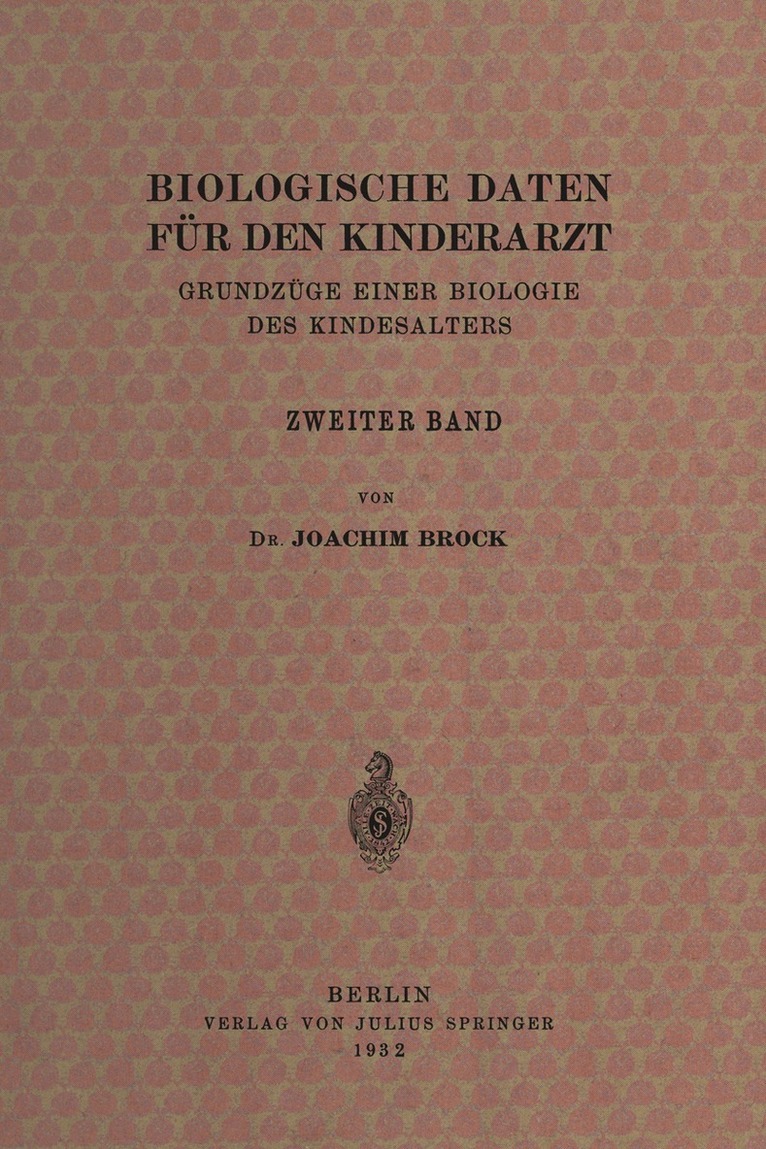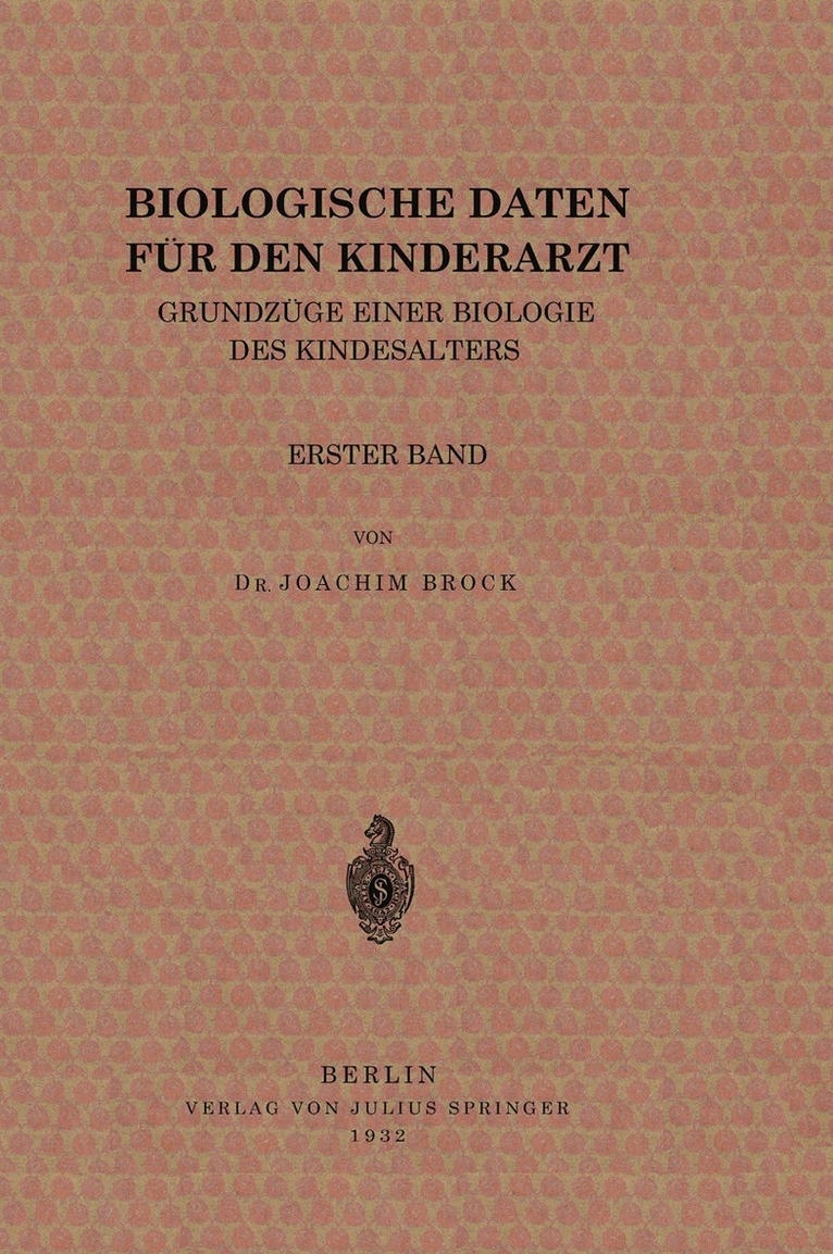 Grundzüge Einer Biologie des Kindesalters Erster Band