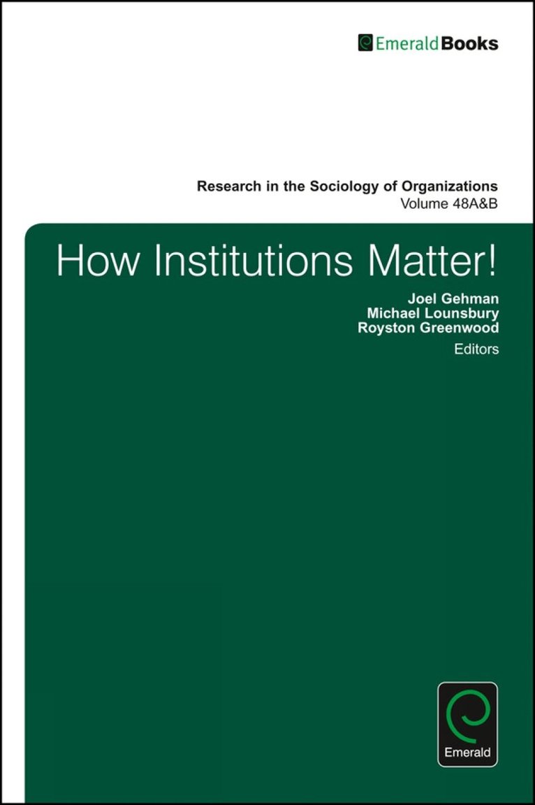 This double volume presents a collection of 23 papers on how institutions matter to socio-economic life. The effort was seeded by the 2015 Alberta Institutions Conference, which brought together 108 participants from 14 countries and 51 different institutions. The resulting papers delve deeply into the practical impact an institutional approach enables, as well as how such research has the potential to influence policies relevant to critical institutional changes unfolding in the world today. In Volume 48A, the focus is on the micro foundations of institutional impacts. In Volume 48B, the focus is on the macro consequences of institutional arrangements. Looking across the two volumes, there are multiple theoretical, conceptual, methodological and practical points of convergence and divergence. Overall, the volumes highlight the many ways in which institutional processes and institutional researchers can contribute to our understanding of the micro foundations and macro consequences of institutions and their impacts on a wide variety of globally pressing issues, while also identifying a variety of fruitful directions for knowledge accumulation and development.
