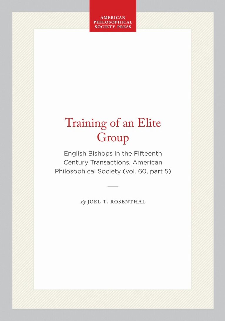 English Bishops in the Fifteenth Century Transactions, American Philosophical Society (vol. 60, Part 5)