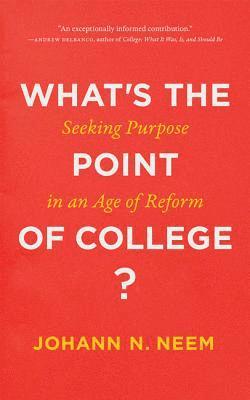 Before we can improve college education, we need to know what it's for.In our current age of reform, there are countless ideas about how to "fix" higher education. But before we can reconceptualize the college experience, we need to remember why we have these institutions in the first place—and what we want from them. In What's the Point of College?, historian Johann N. Neem offers a new way to think about the major questions facing higher education today, from online education to disruptive innovation to how students really learn. As commentators, reformers, and policymakers call for dramatic change and new educational models, this collection of lucid essays asks us to pause and take stock. What is a college education supposed to be? What kinds of institutions and practices will best help us get there? And which virtues must colleges and universities cultivate to sustain their desired ends? During this time of drift, Neem argues, we need to moor our colleges once again to their core purposes. By evaluating reformers' goals in relation to the specific goods that a college should offer to students and society, What's the Point of College? connects public policy to deeper ethical questions. Exploring how we can ensure that America's colleges remain places for intellectual inquiry and reflection, Neem does not just provide answers to the big questions surrounding higher education—he offers readers a guide for how to think about them.