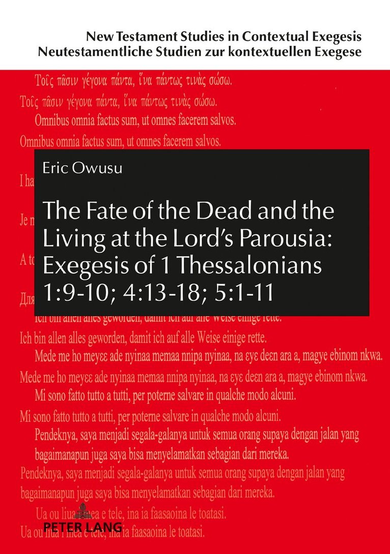 This book traces the roots of the Christian belief in resurrection and the afterlife as presented by Paul in First Thessalonians.The Ghanaian author adopted mainly the approach of History of Religion (Religionsgeschichte) to his study of the Pauline exhortations on the fate of the dead and the living at the Lord’s parousia in First Thessalonians. He is of the view that neither the African Traditional Religion nor ancient Greek philosophy and mythology can give the background information on the Pauline exhortations in question but Paul’s origin as a Jewish Pharisee who believed in the resurrection of the dead and valued this belief he inherited from Judaism.The publication can help believers in Christ see death as an event which paves the way for them to begin a new life with God, their creator.