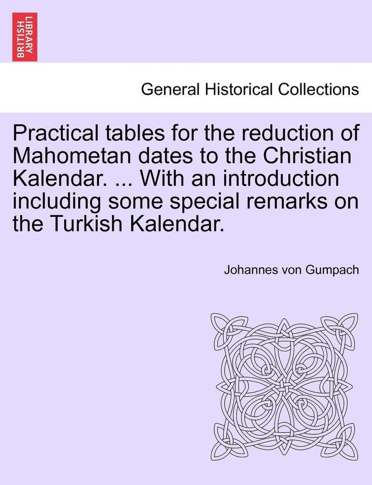 Practical Tables for the Reduction of Mahometan Dates to the Christian Kalendar. ... with an Introduction Including Some Special Remarks on the Turkish Kalendar.