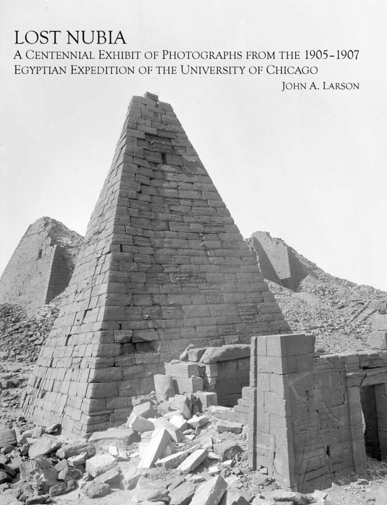 Lost Nubia: A Centennial Exhibit of Photographs from the 1905-1907 Egyptian Expedition of the University of Chicago is the catalogue for the inaugural exhibit in the Marshall and Doris Holleb Family Special Exhibits Gallery of the Oriental Institute Museum. Curated by John A Larson, Oriental Institute Museum Archivist, the exhibit of fifty-two historic photographs from the Oriental Institute Archives was selected as a temporary accompaniment to the new permanent installation of objects from ancient Nubia. These photographic images document some of the archaeological sites in Nubia that have disappeared under the waters of Lake Nasser and a few places that are so remote that few tourists have ever seen them. These documentary images, taken during the consecutive winter field seasons of 1905-1906 and 1906-1907, represent just a small part of a corpus of nearly 1,200 black-and-white negatives that were made by the Egyptian Expedition of the University of Chicago, under the direction of James Henry Breasted. The original glass-plate field negatives for the first season of the expedition, 1905-1907, were made by German photographer Friedrich Koch. For the expedition's second field season up the Nile (1906-1907) Breasted decided to supplement the professional glass-plate photography of Horst Schliephack with a second camera that used roll-film. The smaller-format film negatives were used to take ethnographic photographs, as well as candid photographs of the expedition members at work.