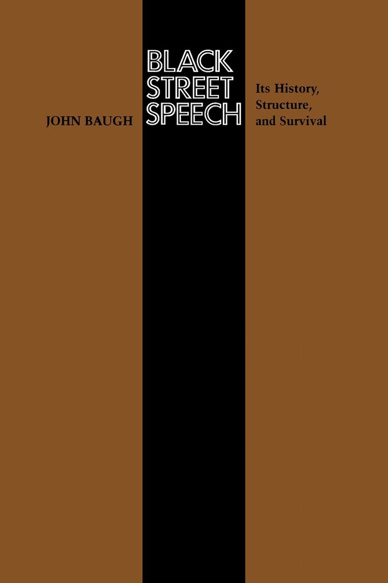 In the minds of many, black street speech-the urban dialect of black Americans-bespeaks illiteracy, poverty, and ignorance. John Baugh challenges those prejudices in this brilliant new inquiry into the history, linguistic structure, and survival within white society of black street speech. In doing so, he successfully integrates a scholarly respect for black English with a humanistic approach to language differences that weds rigor of research with a keen sense of social responsibility. Baugh's is the first book on black English that is based on a long-term study of adult speakers. Beginning in 1972, black men and women in Los Angeles, Philadelphia, Chicago, Austin, and Houston were repeatedly interviewed, in varied social settings, in order to determine the nature of their linguistic styles and the social circumstances where subtle changes in their speech appear. Baugh's work uncovered a far wider breadth of speaking styles among black Americans than among standard English speakers. Having detailed his findings, he explores their serious implications for the employability and education of black Americans. Black Street Speech is a work of enduring importance for educators, linguists, sociologists, scholars of black and urban studies, and all concerned with black English and its social consequences.