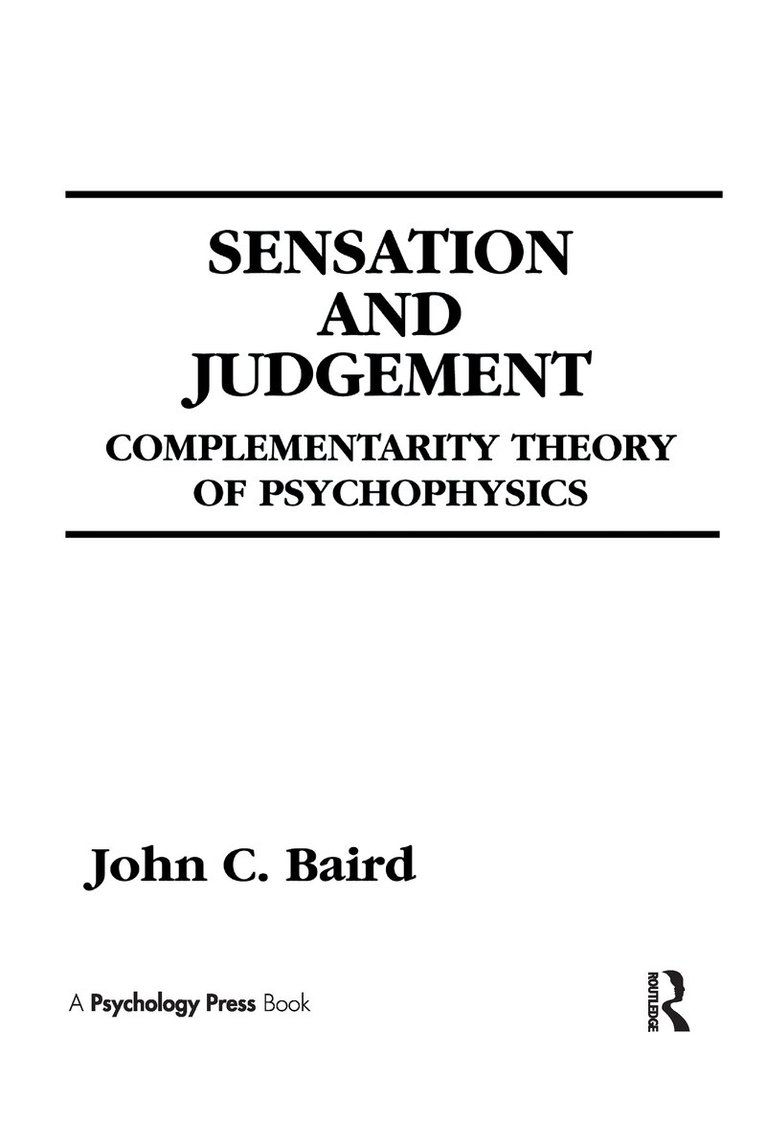 Psychophysical theory exists in two distinct forms -- one ascribes the explanation of phenomena and empirical laws to sensory processes. Context effects arising through the use of particular methods are an unwanted nuisance whose influence must be eliminated so that one isolates the "true" sensory scale. The other considers psychophysics only in terms of cognitive variables such as the judgment strategies induced by instructions and response biases. Sensory factors play a minor role in cognitive approaches. This work admits the validity of both forms of theory by arguing that the same empirical phenomena should be conceptualized in two alternative, apparently contradictory, ways. This acceptance of opposites is necessary because some empirical phenomena are best explained in terms of sensory processes, while others are best ascribed to central causes.The complementarity theory stresses the "mutually completing" nature of two distinct models. The first assigns importance to populations of sensory neurons acting in the aggregate and is formulated to deal with sensory effects. The second assigns importance to judgment uncertainty and to the subject strategies induced by experimental procedures. This model is formulated to explain context effects. Throughout the text, the exposition is interlaced with mathematics, graphs, and computer simulations designed to reveal the complementary nature of psychophysical explanations.
