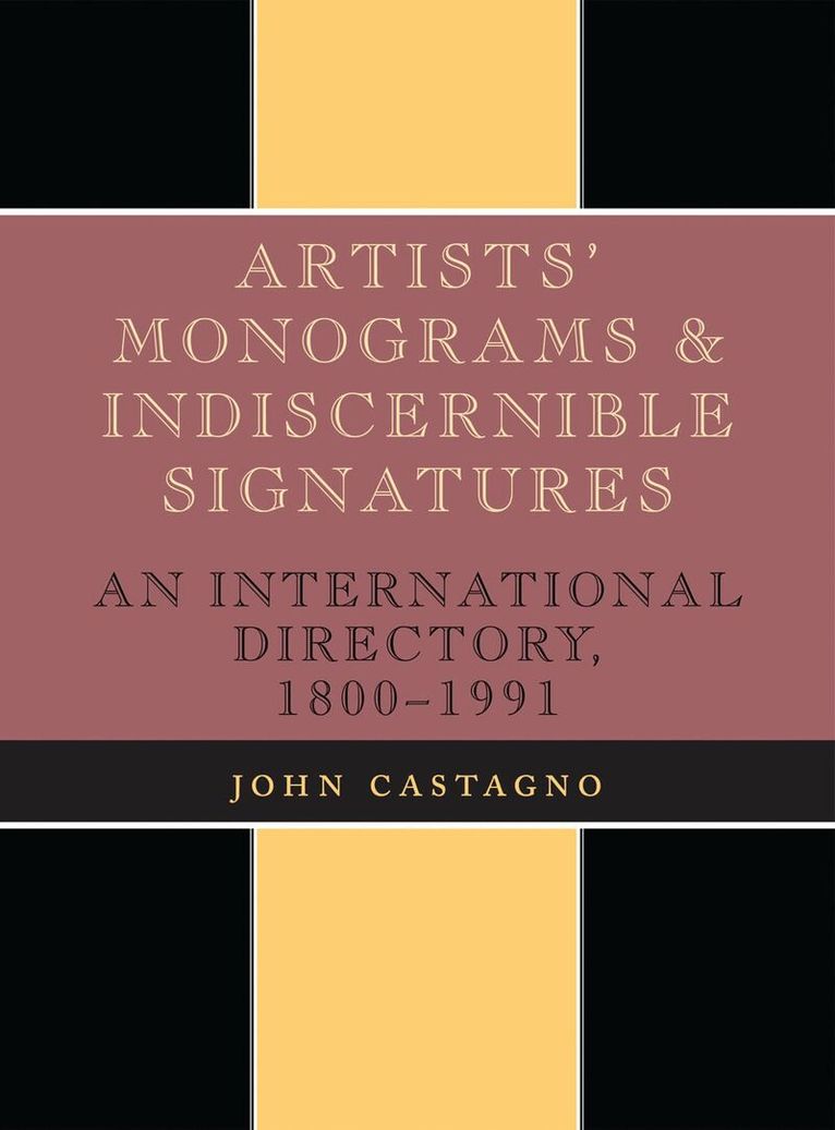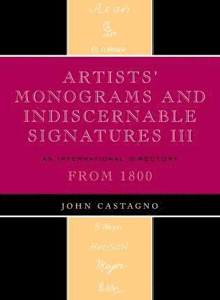 John Castagno's Artists' Signatures and Monograms have become the standard reference source for galleries, museums, libraries, and collectors around the world. Whether used to identify, authenticate, or verify signatures and works of both well-known and little-known artists, Castagno's work has no equal.In the first volume of Artists Monograms and Indiscernible Signatures, An International Directory, 1800-1991 (Scarecrow, 1991), Castagno provided identification for more than 3,700 artists' signatures, along with biographical information and reference sources. The second volume featured some 2,100 artists and 3,000 signature examples. This third volume contains more than 1,250 signatures of some 1,225 artists. In addition to the standard signature entries, the book features sections for monograms and initials, common surname signatures, alternative surname signatures, symbols, and Cyrillic Signatures. Less than five percent of the entries in this volume are listed in the first two volumes—and these are included to provide additional information about the artists.The use of Artists' Monograms and Indiscernible Signatures III: An International Directory provides the researcher a reference tool not duplicated elsewhere—one that will save many hours of research.